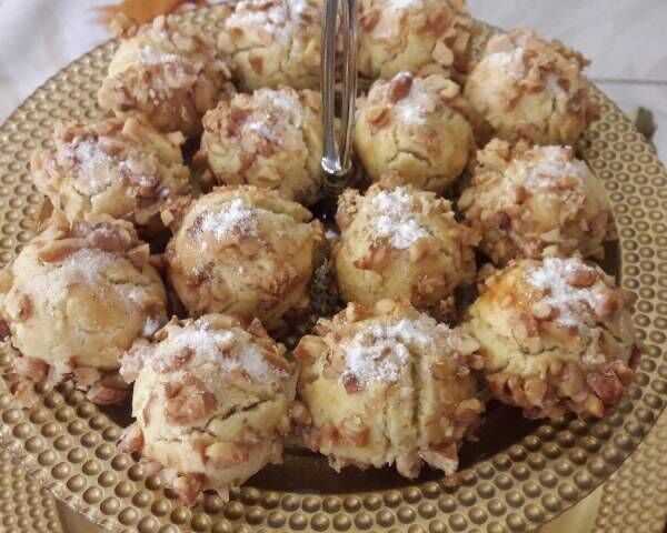 داخل ظرفی ابتدا کره و پودر قند را با هم مخلوط کنید و با نوک انگشت به مدت 5 دقیقه ورز دهید. بعد زرده تخم مرغ و وانیل را اضافه کرده و همچنان با نوک انگشت ورز دهید. بعد از مخلوط شدن مواد اسانس موز و هل را اضافه کنید و کمی بعد از هم زدن آرد را کم کم به بقیه مواد بیفزایید و با دست خوب ورز دهید تا خمیر نرمی بدست بیاید.سپس خمیر آماده شده را به مدت نیم ساعت استراحت دهید. بعد از استراحت خمیر آن را به اندازه گلوله هایی کوچک مانند فندق جدا کنید و دانه دانه در سفیده تخم مرغ بینداریدو بعد از چند ثانیه داخل گردوی خرد شده بغلطانید.